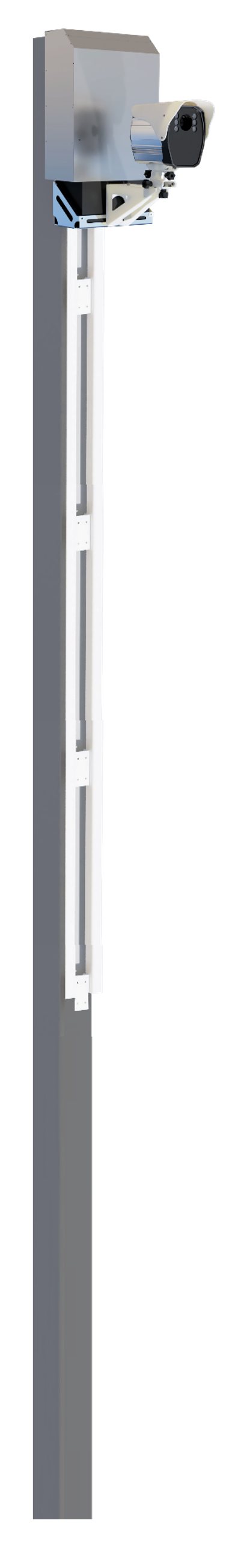 - Стационарная направляющая с механизмом подъёма АКБ и КФВФЗакрепляется на столбах в местах установки КФВФ, устанавливается в верхней части столба, что обеспечивает вандалозащищённость системы